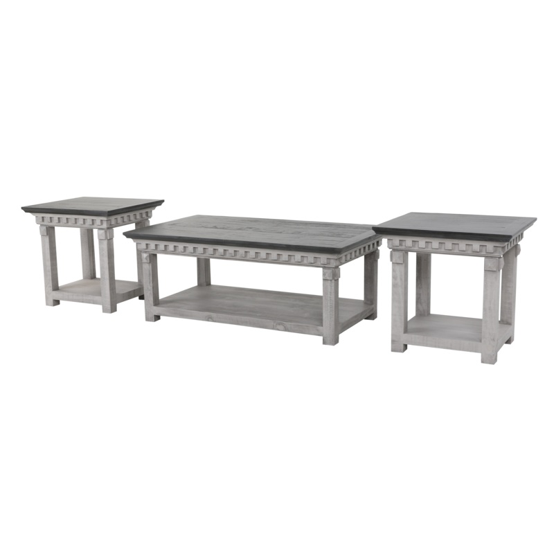 Experience the timeless appeal and rustic beauty of our meticulously crafted 3-Piece Coffee Table Set. Made from solid wood and elegantly finished in rustic gray, this set enhances your living space with its charming countryside aesthetic. The centerpiece is a sturdy rectangular coffee table with a richly textured tabletop, adorned with a darker gray shade for added depth and character. Accompanying the coffee table are two matching end tables, meticulously crafted with attention to detail, creating a cohesive and harmonious arrangement. With exceptional durability and practicality, this set offers a stylish solution for holding beverages, books, and other items within easy reach. Elevate your home with the captivating visual contrast and perfect blend of style and functionality that this coffee table set provides.