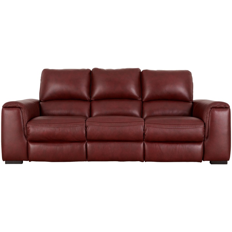 Impressive in scale while keeping an air of refinement, this power reclining sofa stuns with soft, supple leather match upholstery in garnet. Sink into real leather in the seating area and inside back while catering to your comfort with one-touch power rec