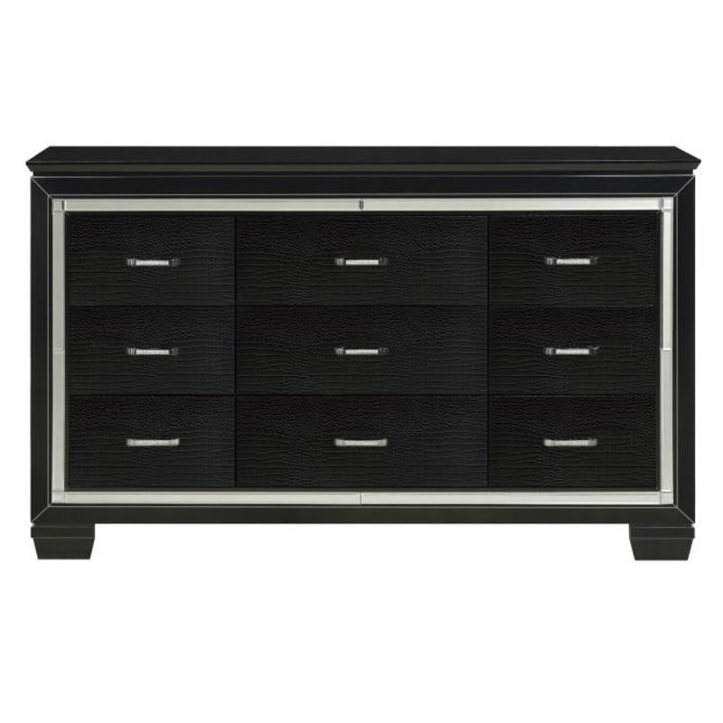 Glamour reigns in the design of the Allura Collection. Alligator embossing and high polished crystal-enhanced hardware boldly accent the black finish of the dresser.