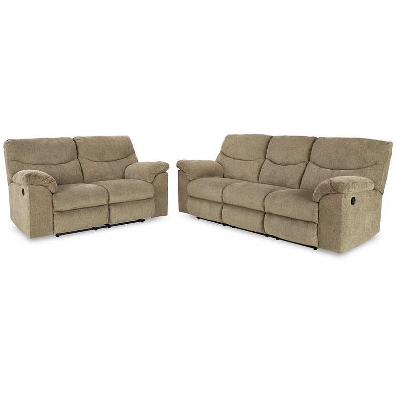 Sincere in its styling, this reclining seating package invites a relaxed sensibility into your space. Its beige upholstery has a universal appeal, with pull-tab reclining making it easy to kick back in comfort. Providing high-quality functionality at an af