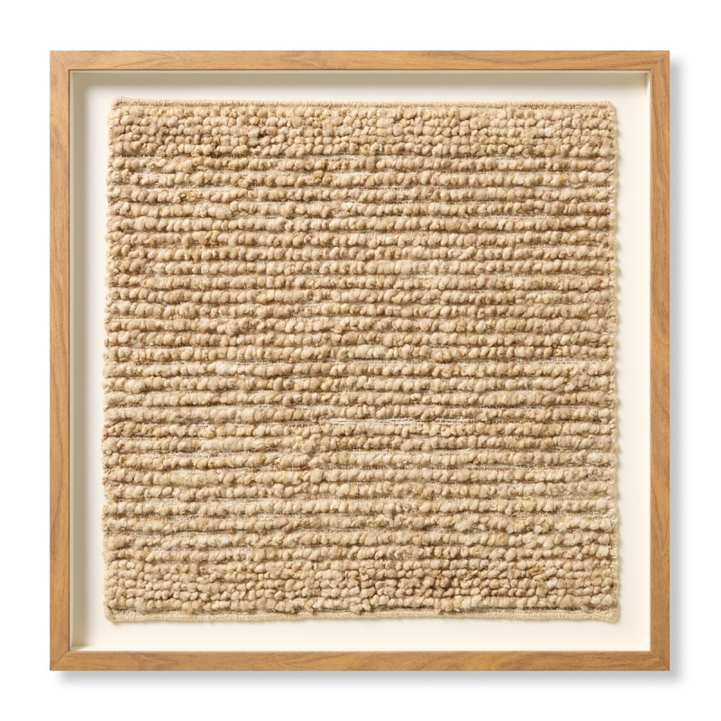 Haystack wall art features a hay-toned square textile with an organic, pebbled texture that complements many home decor styles, from organic to farmhouse. The neutral artwork is made in India of blended materials and custom framed by Loloi in the USA, meas