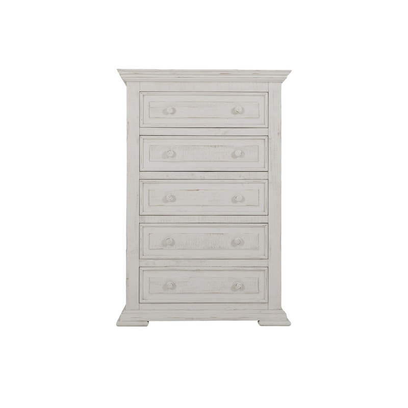 Terra White – Chest With 5 Drawers – Distressed White