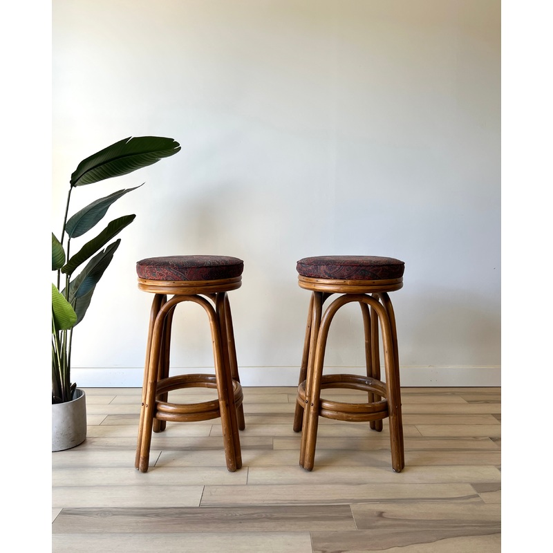 Sold as a pair.Measurements: 16 wide x 16 deep x 30 tallCondition: These vintage stools are an 8.5 and in good condition with light wear from use and age. There are a couple small scuffs and some discoloration but overall they are in good condition. Please